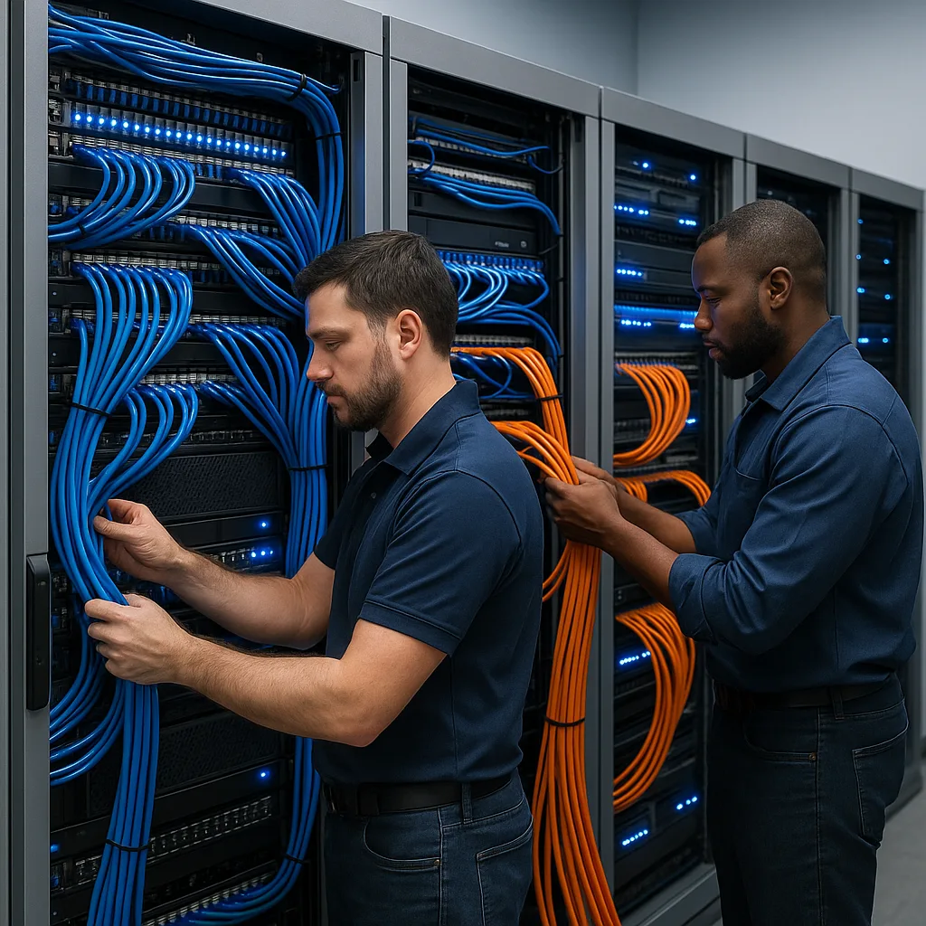 ITIPERU desarrolla e implementa proyectos de cableado estructurado que permiten construir una infraestructura de red física sólida, ordenada y escalable. Este servicio abarca el diseño, instalación y certificación de redes de voz, datos y video, garantizando conectividad estable y eficiente para todo tipo de empresas. Se utilizan materiales certificados y se aplican estándares internacionales para asegurar un rendimiento óptimo y a largo plazo.